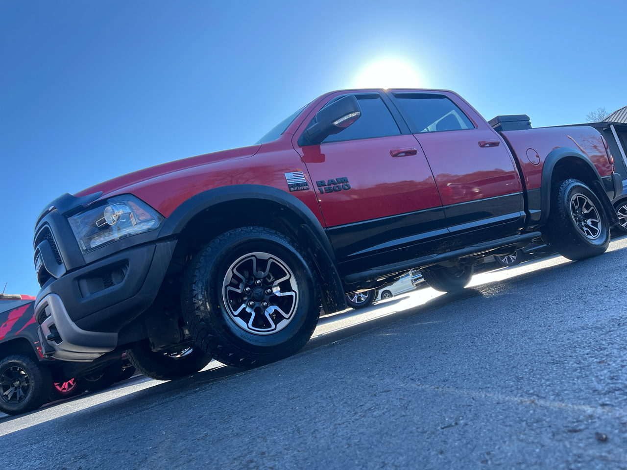 Take a ride on the wild side with this vibrant Red 2017 RAM 1500! Buckle up and hit the road with confidence, thanks to its advanced safety features that keep you secure on every adventure. Whether you're cruising through city streets or tackling off-road terrain, this truck's powerful capabilities and precise control will elevate your driving experience. Slip behind the leather steering wheel and feel the thrill of the open road beckoning you forward. With its sleek alloy wheels and stylish fog lights, this RAM 1500 is sure to turn heads wherever you go. Stay comfortable and in command with the customizable climate controls and driver multi-adjustable power seat. Jam out to your favorite tunes on the AM/FM radio as you navigate your journey with ease using the steering wheel-mounted controls. Don't miss your chance to own this impressive truck that combines style, safety, and performance in one unstoppable package!