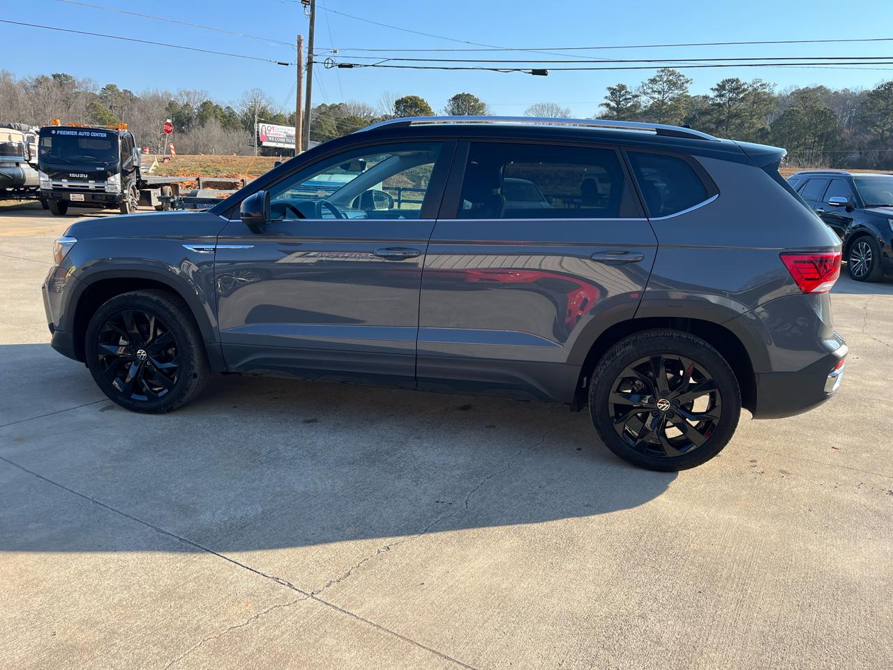 Introducing the sleek and stylish 2023 Volkswagen Taos, a true gem on the roads. With its smooth gray exterior that shines like silver under the sunlight, this pre-loved beauty is bound to turn heads wherever it goes. Buckle up and embark on new adventures with the zippy performance offered by its turbocharged engine, making every drive a thrilling experience. The spacious interior provides a comfortable oasis for you and your passengers, perfect for those road trips or daily commutes. This Taos is equipped with modern technology to keep you connected and entertained, making every journey a breeze. So, whether you're cruising around town or exploring the great outdoors, this Volkswagen Taos is ready to be your trusty companion on the road. Don't miss out on the opportunity to make this stylish and practical vehicle yours today!