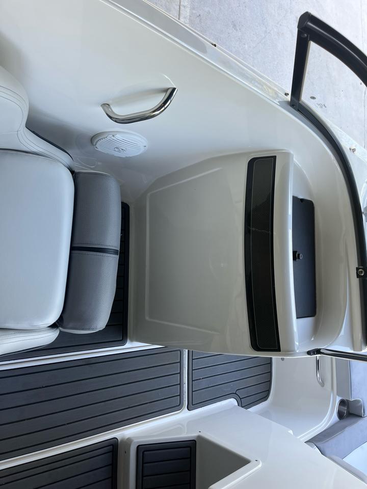 With its powerful engine, this boat will have you flying across the waves in no time. The spacious cockpit provides plenty of room for you and your crew to relax and soak up the sun, while the comfortable seating ensures a smooth ride even in choppy waters. The built-in ski tow pole makes it easy to enjoy all your favorite water sports, from wakeboarding to tubing and everything in between.